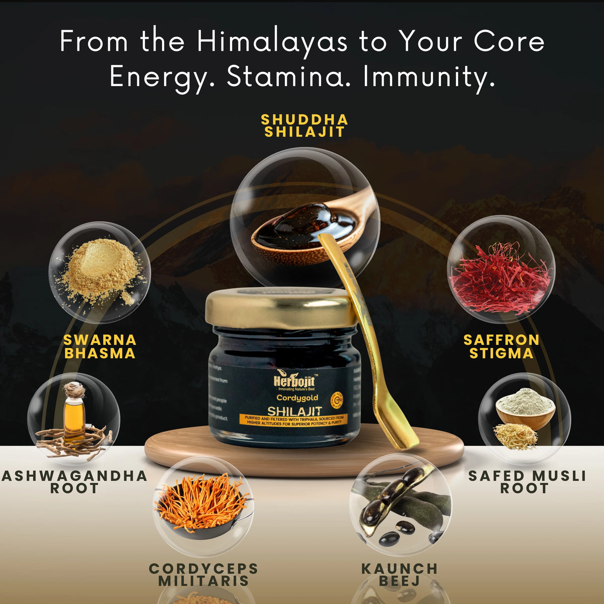- Feel a surge in energy and mood as Cordyceps boosts oxygen use and Shilajit delivers vital minerals. Notice reduced fatigue and sharper focus in daily activities.